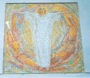 Il mosaico realizzato da Angelo Gatto è esposto sulla facciata della Chiesa di San Nicolò a Cibiana di Sotto.
